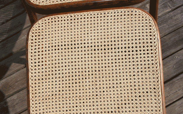 Blick auf das detaillierte Wabengeflecht des Schaukelstuhls. Ein typischen Beispiel für aus Alt mach Neu!