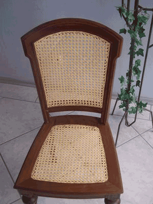 Stuhl mit erneurten Sitz und Rücken aus Wabengeflecht.